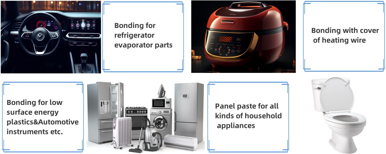 Low odor,low VOC ; Raw materials do not use harmful materials ; High adhesion to low surface energy materials (e.g.PP,form)